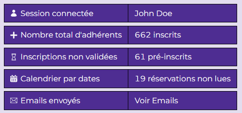 Vous pouvez cocher les présences de vos adhérents à chaque cours et vérifier les inscriptions